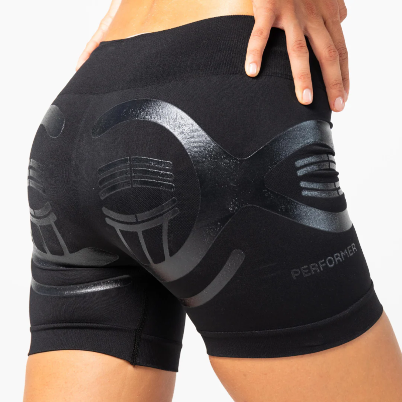 PERFORMER WOMAN is the first biomechanical short designed to provide targeted support to the pelvic area, glutes, and lower back, enhancing muscle balance and stability during sports activities. Thanks to graduated compression and strategically placed silicone applications, PERFORMER promotes circulation, reduces muscle vibrations, and speeds up recovery, delivering lightness, protection, and confidence even during the most intense efforts. Main benefits: